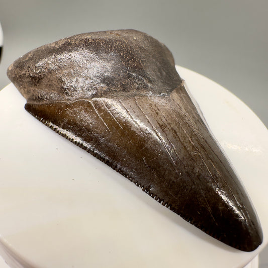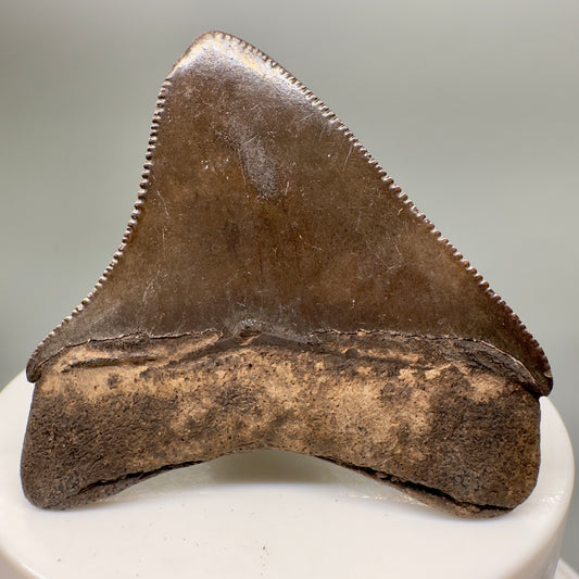 Brown, serrated 2.82" Fossil Megalodon Tooth from Georgia