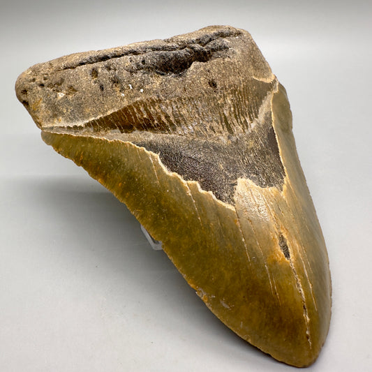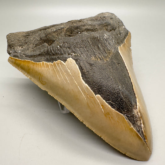 Sharply Serrated, gorgeous colors 5.61" Fossil Megalodon Tooth - North Carolina